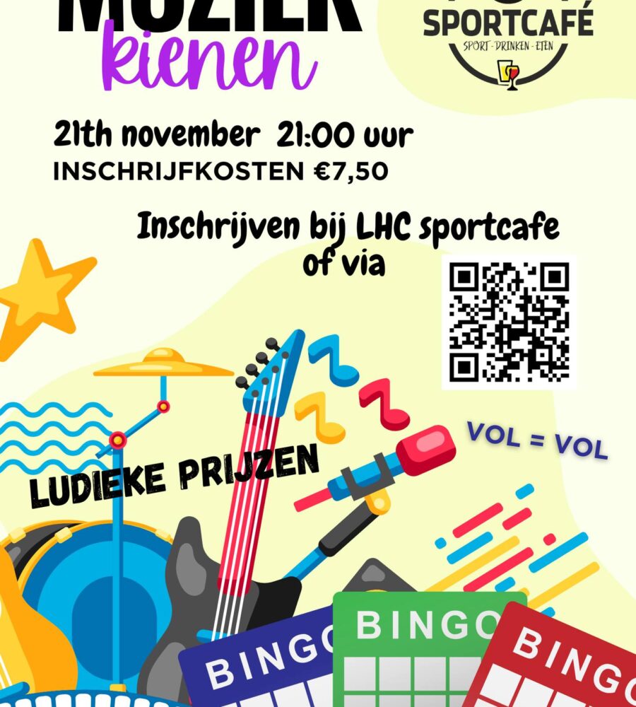 Op vrijdag 21 november is er muziekkienen in het LHC Sportcafé! Ken jij alle nummers én heb je ze op je kaartje staan?