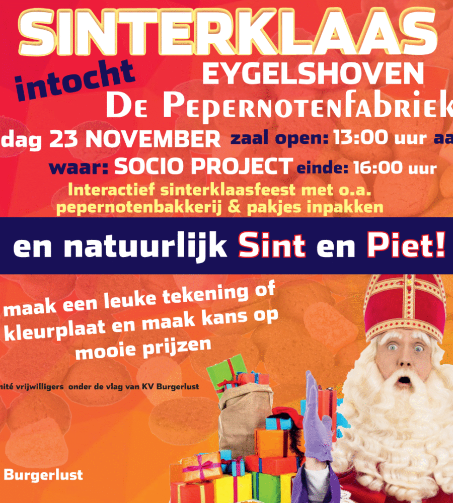 Kom gezellig langs in het Socio-Project, bak pepernoten, pak cadeautjes in, maak een tekening en natuurlijk… ga op de foto met Sint & Piet!